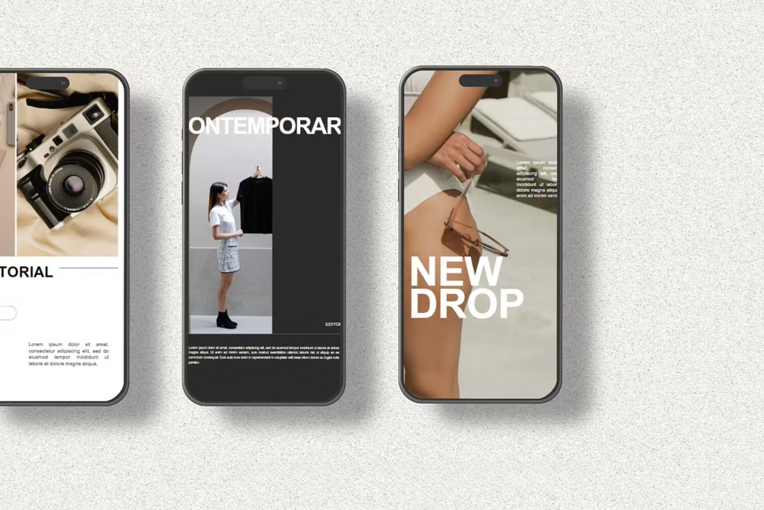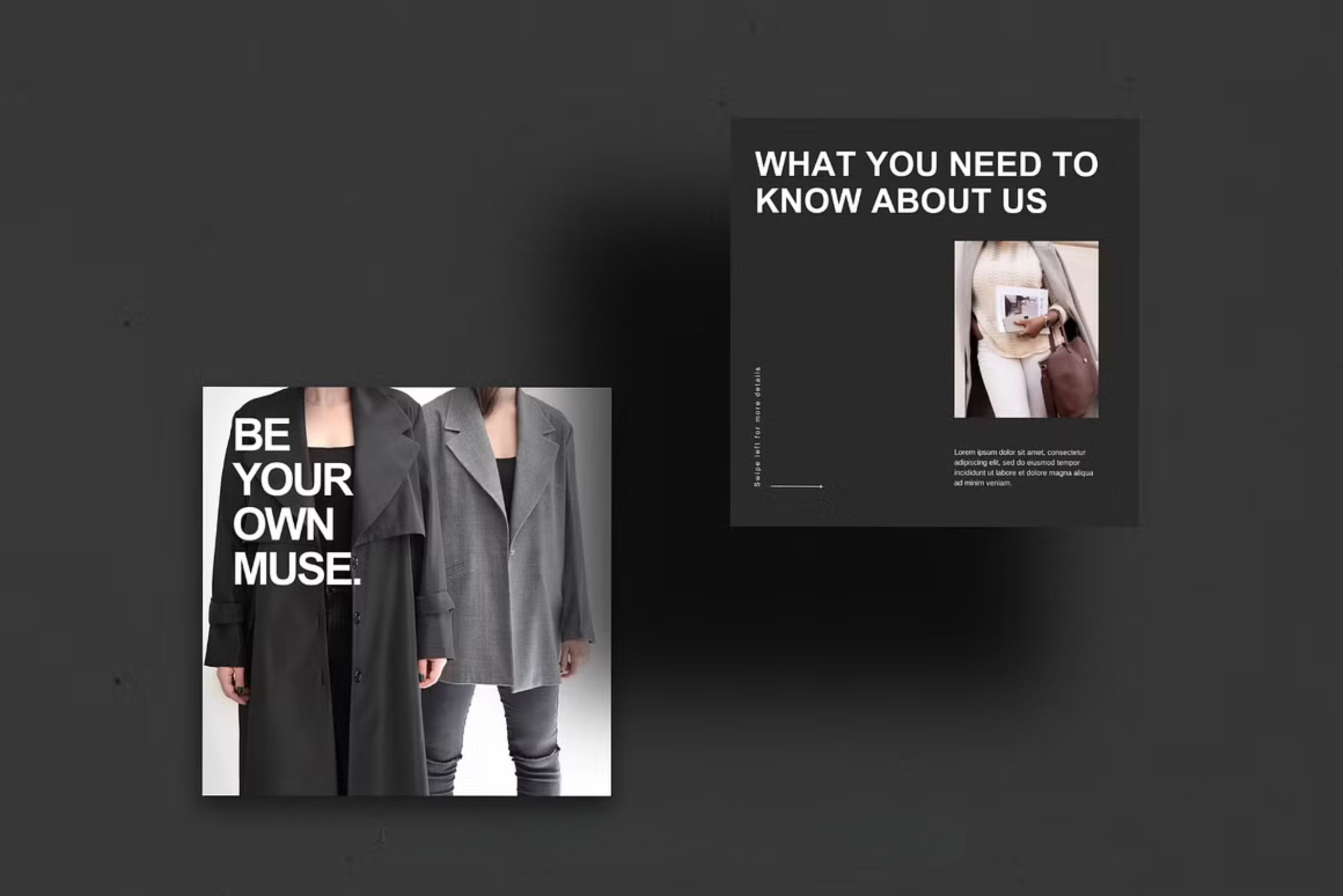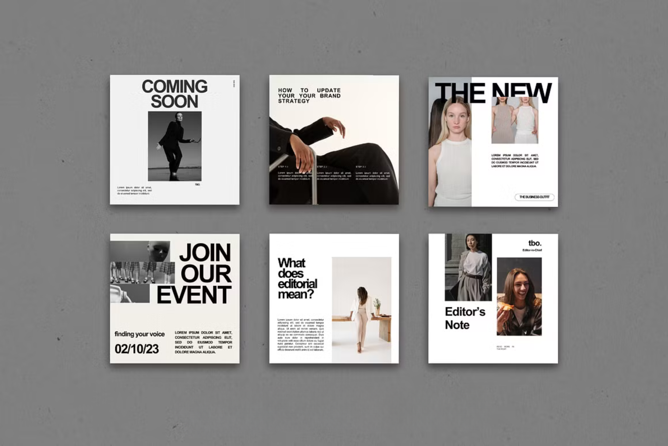 Elevate your Instagram with the Bold Editorial Instagram Template Pack by 1980five. Designed in a neutral palette of beige, cream, grey and black, this collection blends minimalism with striking editorial layout, giving your feed a clean, confident and polished aesthetic.